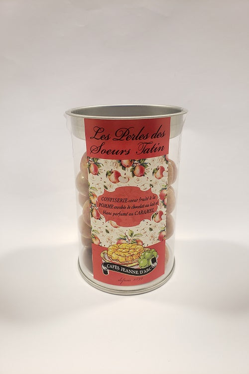 Ces délicieuses confiseries au cœur fruité à la pomme sont enrobées de chocolat au lait et blanc parfumé au caramel. Créées par la maison "Les Cafés Jeanne d'Arc", elles sauront vous apporter douceur et réconfort.