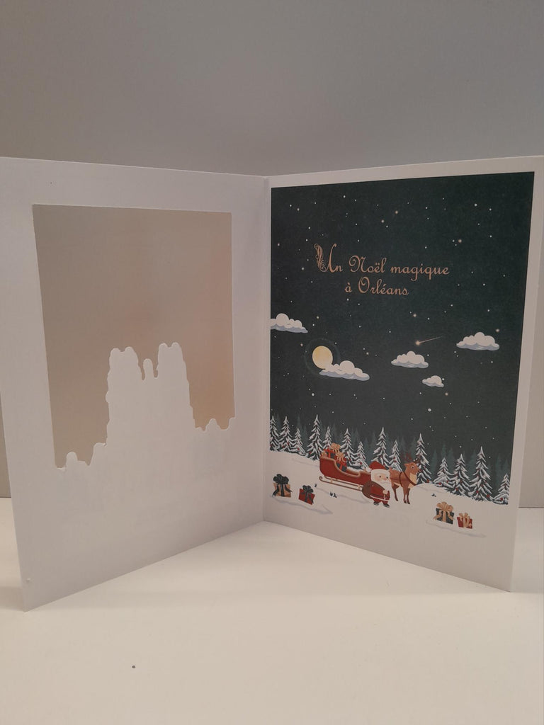 Designed by Iconys , this pretty postcard features all the main monuments of the city and the spirit of Christmas in Orléans.